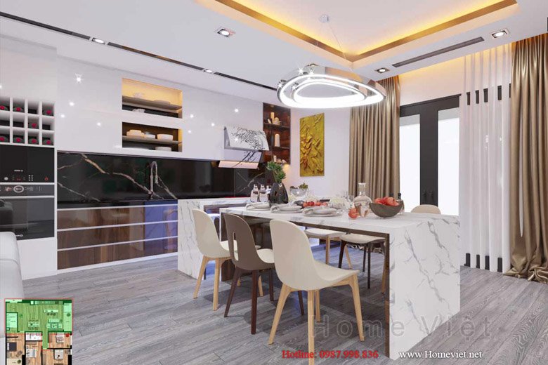 Phòng khách và phòng bếp đều rất nhỏ nhắn, được đặt cạnh ban công nên rất thoáng mát.